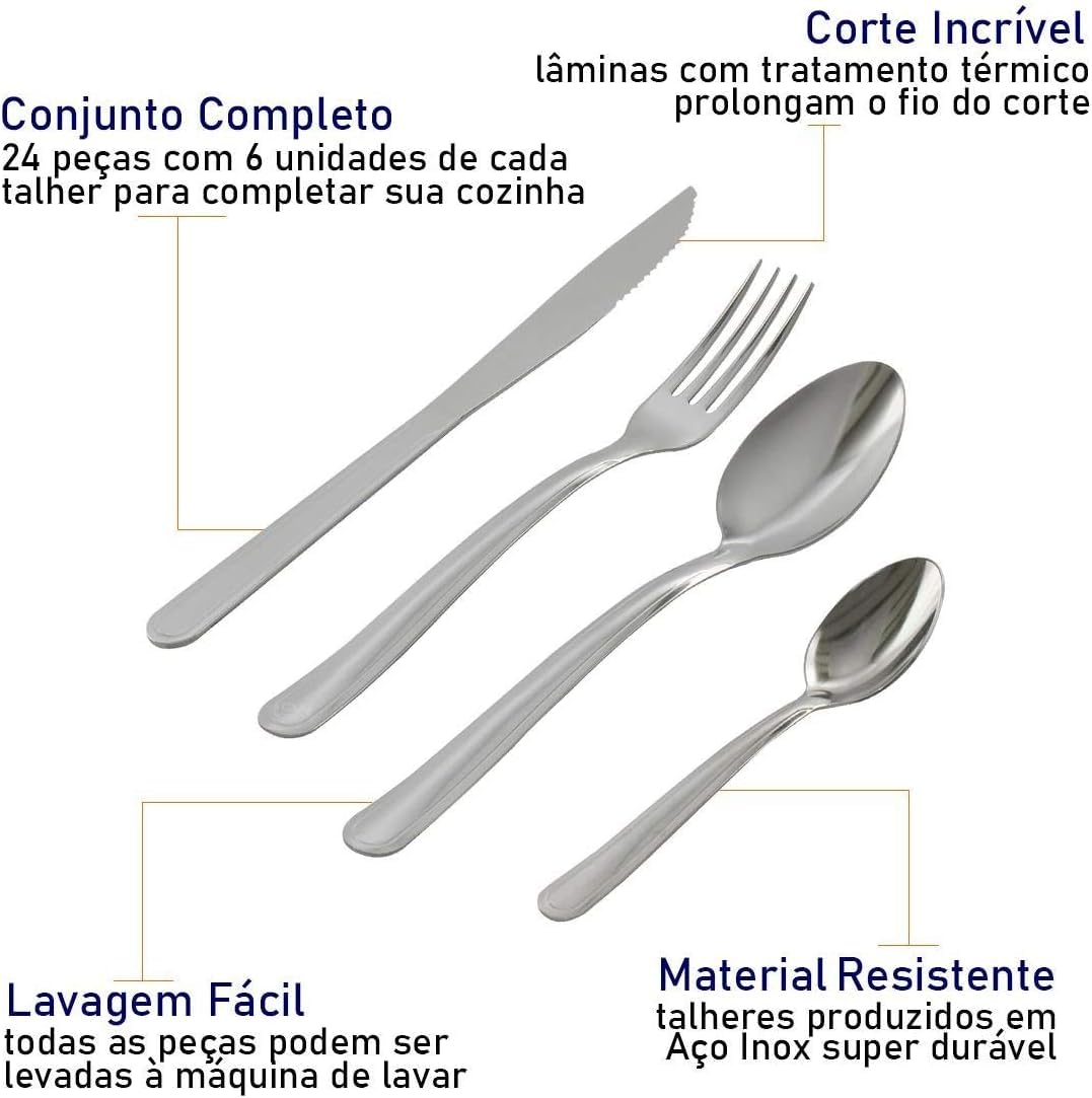 - Faqueiro em ao ix resistente com 24 peas, design clssico e sofisticado, ideal para refeies em famlia e com amigos