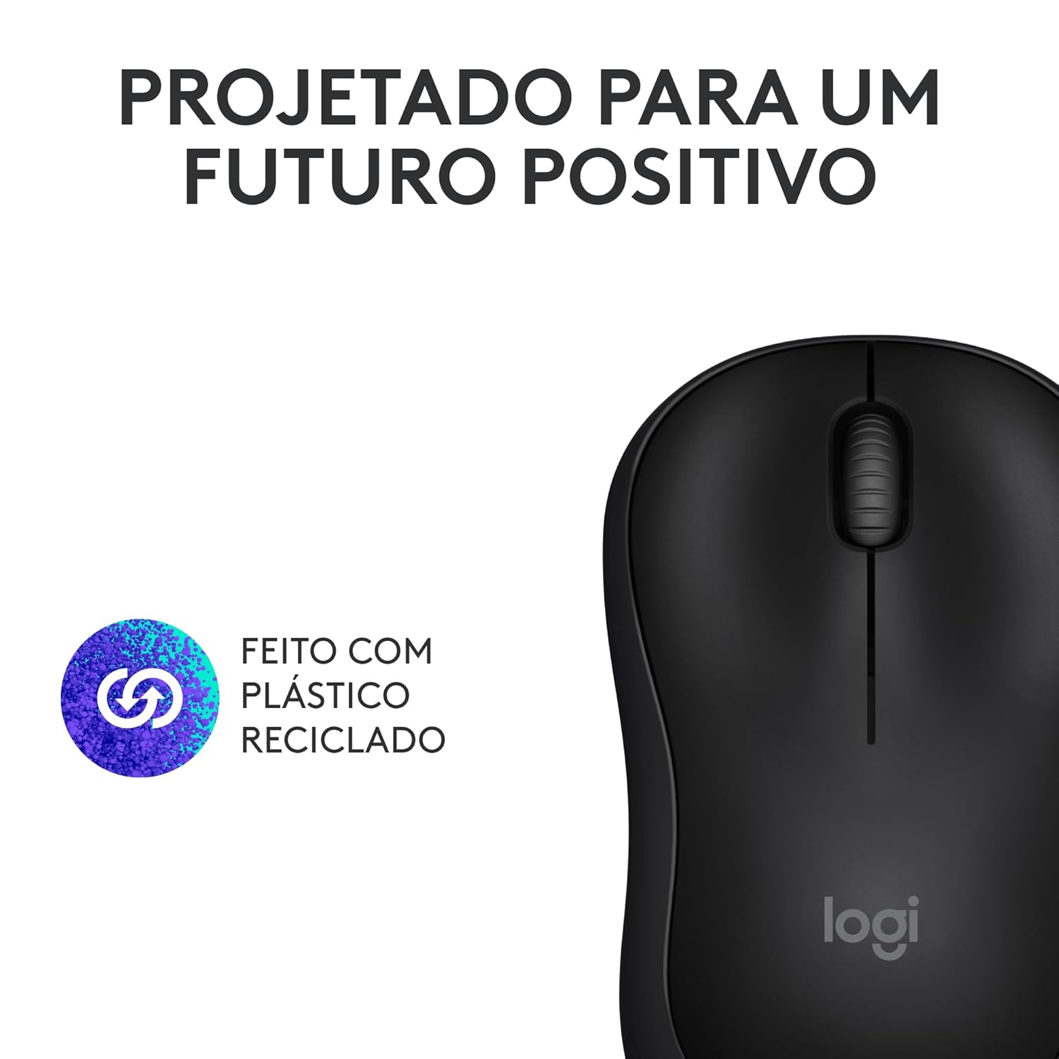 Detalhes Conhea o M240, um mouse bluetooth da Logitech que ocupa menos espao na sua mesa. s parear, com uma conexo Bluetooth sem fio rpida e simples, e comear a usar. Voc se conecta em segundos, sem dongle ou porta. Mouse super silencioso com reduo de 90% no rudo do clique sem alterar a sensao, eliminando barulhos e distraes para voc e todos ao seu redor (1). Bateria com vida til de at 18 meses e repouso automtico, fazendo com que ela dure mais. Este mouse slim, confortvel e porttil no apenas cabe na bolsa como tambm se adapta perfeitamente a destros e canhotos. Mouse Bluetooth confivel e de longo alcance que funciona a at 10 m de distncia do computador (2) (1) O nvel sonoro do clique esquerdo em dB foi medido por um laboratrio independente a um metro de distncia. Comparado com o Logitech M185. (2) A vida til de uma pilha varia, dependendo do usurio e das condies de computao (3) O alcance sem fio real pode variar conforme o uso, as configuraes e as condies do ambiente. (4) Com base no clculo da taxa de transferncia em bitssegundo combinado mdia de velocidade e preciso de todos os dispositivos avaliados no estudo. Um estudo do Laboratrio de Ergonomia da Logitech com 23 participantes (out2019) com dois mouses padro da Logitech e dois touchpads padro integrados (5) Com base em bitssegundo para tempo mdio de movimento para todos os dispositivos participantes do estudo. Um estudo do Laboratrio de Ergonomia da Logitech com 23 participantes (out2019) com dois mouses padro da Logitech e dois touchpads padro integrados (6) Com base em dados de venda independentes (em unidades) agregados dos mouses e teclados da Logitech dos maiores mercados globais incluindo Canad, China, Frana, Alemanha, Indonsia, Repblica da Coreia, Rssia, Sucia, Turquia, Reino Unido, EUA (perodo junho de 2021 a maio de 2022). Somente varejo. (7) Exceto o plstico do conjunto de fiao impressa (PWA) e da embalagem.