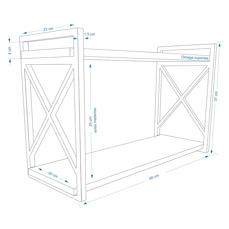 Detalhes Seja bem-vindo mega! Prateleira Estilo Industrial Cozinha de Parede 20x60cm Suporte Preto Madeira em Pinus Estas prateleiras combinam funcionalidade robusta com design contemporneo. Fabricado em material resistente, ele oferece alta durabilidade, proporcionando espao suficiente para suas decoraes ou objetos que precisa organizar. perfeito para compor espaos como cozinhas, salas, escritrios, quartos e reas de servio, agregando charme rstico sem abrir mo da praticidade. Se adapta tanto a decoraes minimalistas quanto a ambientes mais rsticos, trazendo organizao e estilo para qualquer espao. Fcil de instalar e com design compacto, ele a soluo ideal para quem busca otimizar ambientes. Especificaes Altura Total 37cm; Altura Entre as Prateleiras 28cm; Largura total 23cm; Largura onde vai a madeira 20cm; Comprimento 60cm; Material do Suporte Plstico (Polipropeno) Madeira Pinus; Garantia 12 meses. Recomendaes Utilizar um suporte a cada 60cm de distncia; Acompanha kit de instalao com buchas e parafusos; Sobre ns Na mega acreditamos que cada detalhe faz a diferena na criao de ambientes que expressam personalidade e estilo. Fundada com a misso de transformar espaos atravs de peas decorativas nicas, somos especialistas na fabricao de prateleiras, suportes e outros itens que aliam funcionalidade, qualidade e design. Com inspirao no estilo industrial e contemporneo, nossas criaes so feitas para agregar beleza e praticidade a qualquer ambiente, seja na sua casa, escritrio ou comrcio. Cada pea produzida com materiais de alta qualidade, garantindo resistncia e durabilidade, sempre com um toque de sofisticao. Caso tenha dvidas ou precise de ajuda para escolher seu produto, no hesite em entrar em contato conosco!